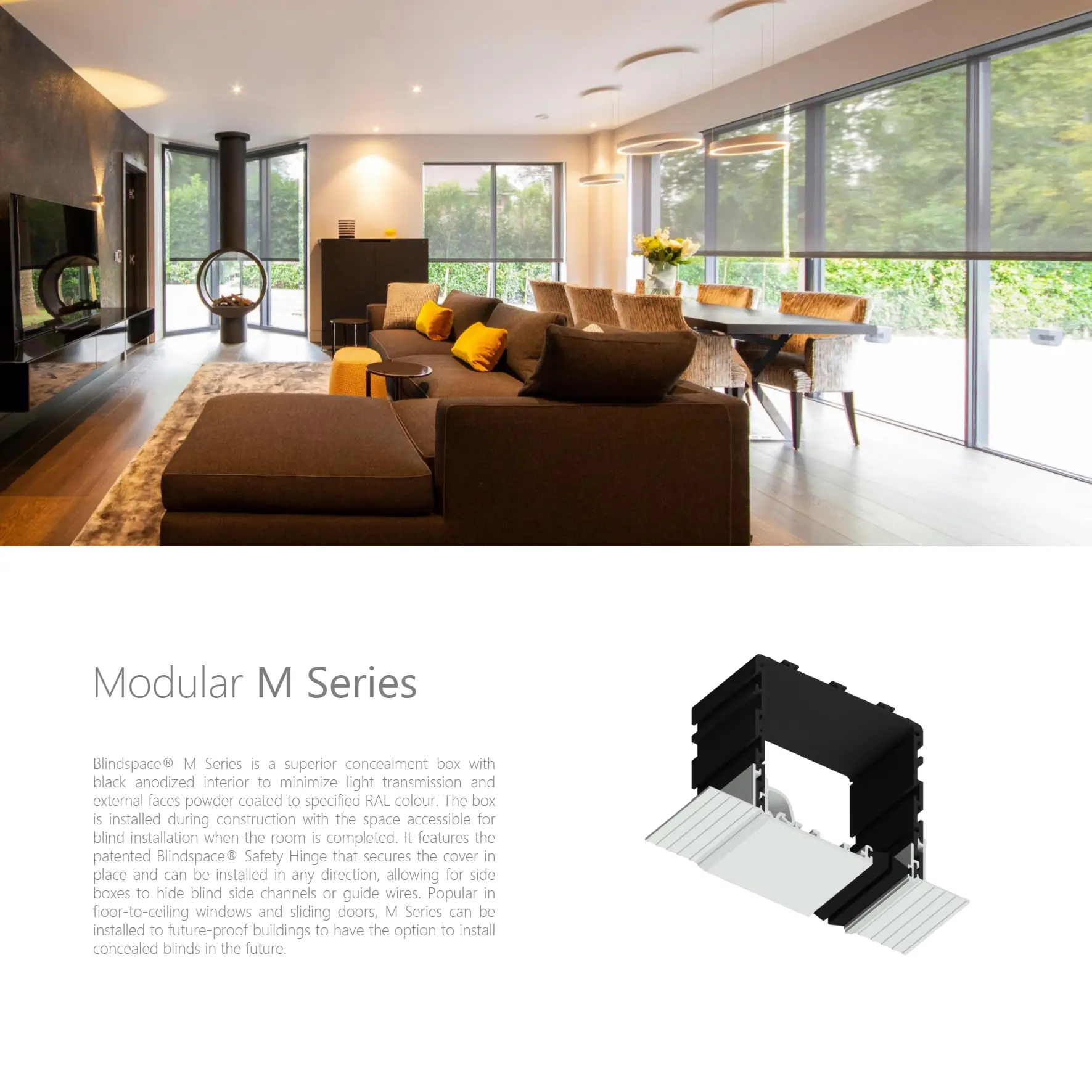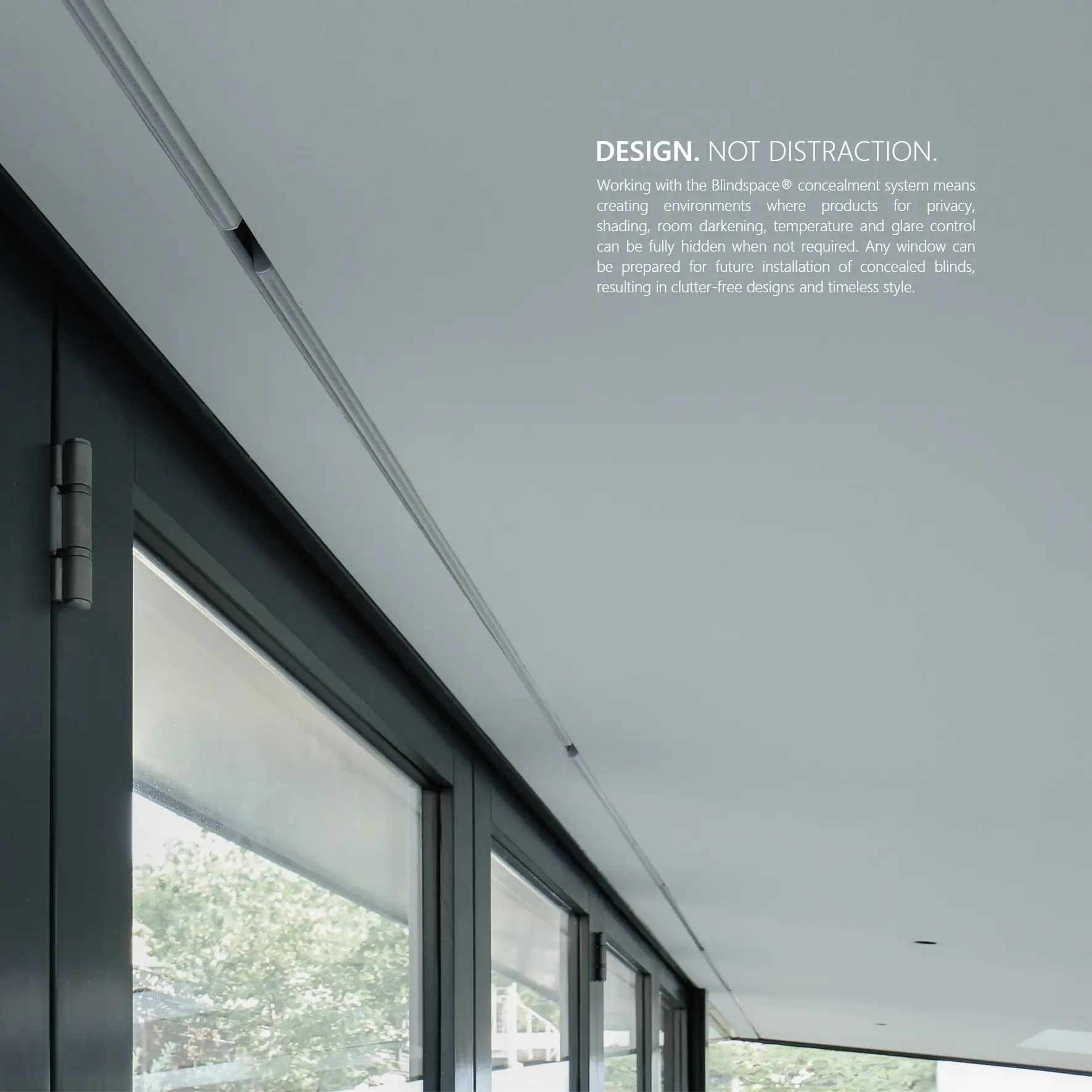 designs and manufactures solutions to conceal blinds and recess curtain tracks for both residential and commercial applications. The company’s simple philosophy is to enable shading, privacy and blackout in any room, with minimal visual impact.
