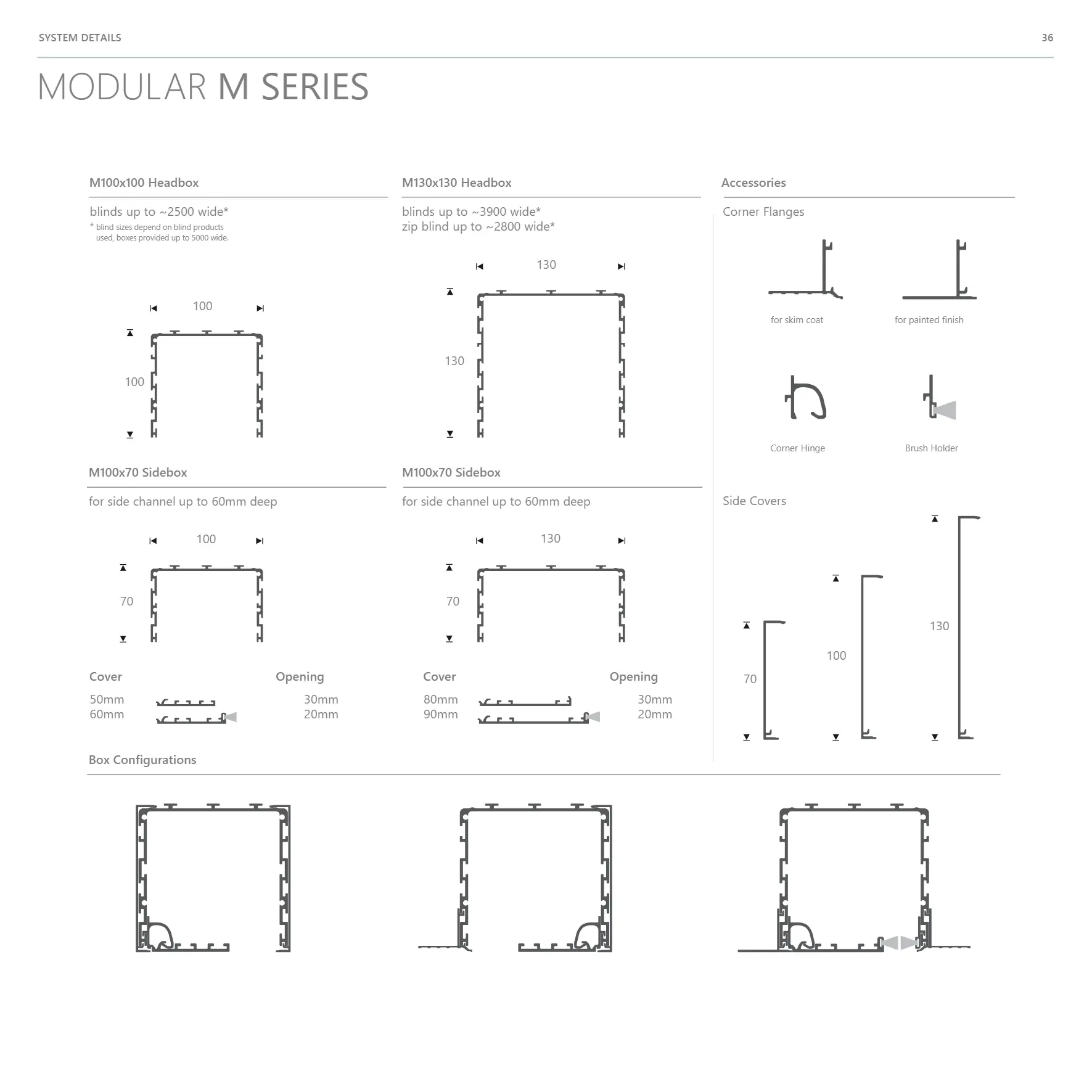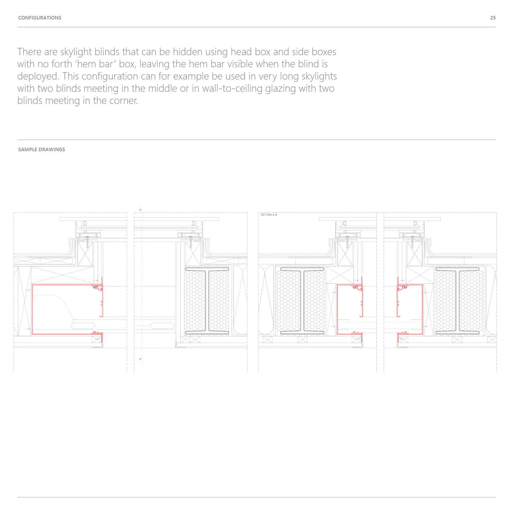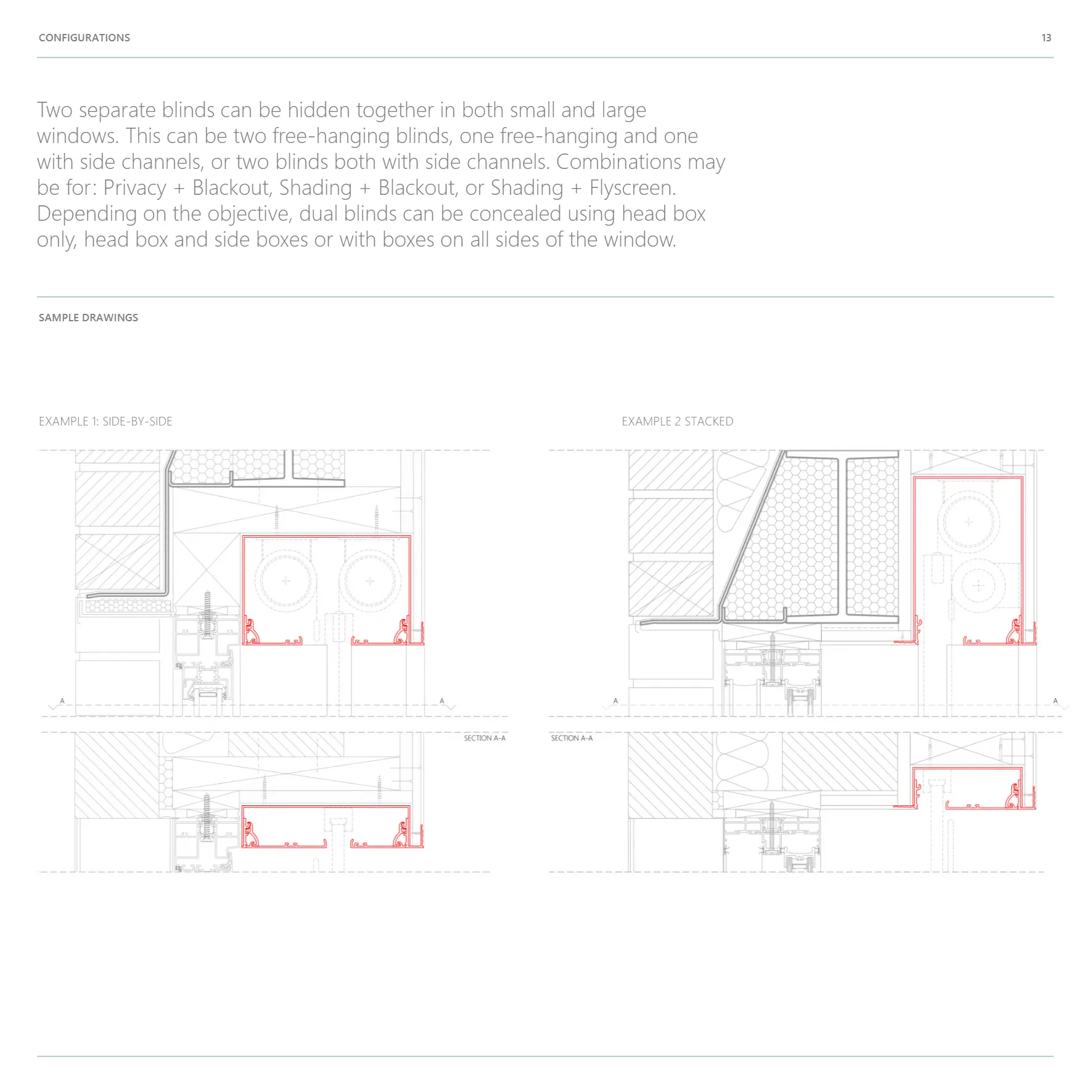 solutions can be used to house single or multiple blinds in windows, doors, gables and skylights. Popular combinations for dual blinds are privacy / blackout, shading / insect screen and insect screen/blackout. Boxes can be installed as head boxes only or as three or four-sided frames on all sides of the opening.