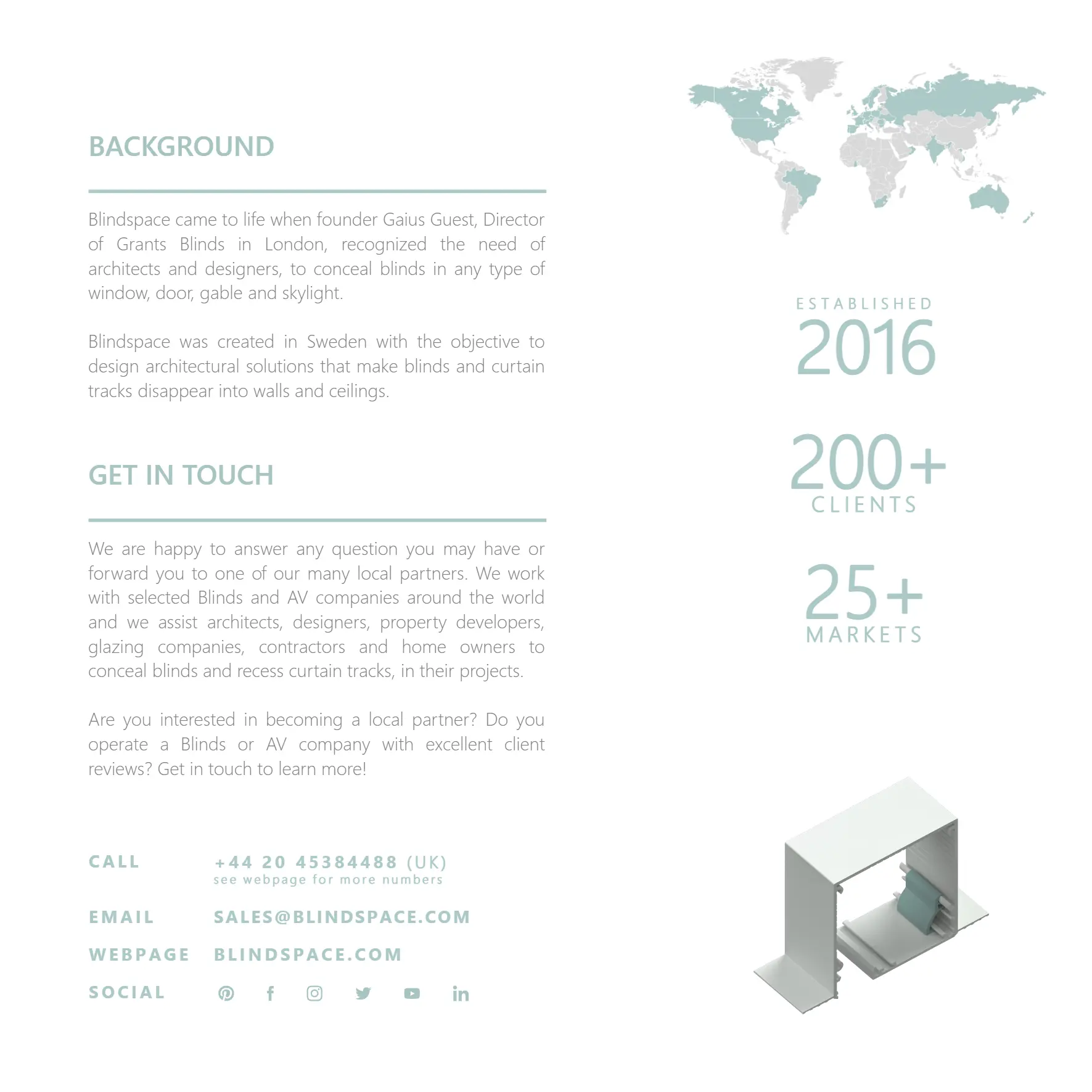 is independently owned and operated from Gothenburg, Sweden. The company started when founder Gaius Guest recognized the need for new solutions to hide blinds as no solutions were readily available. Today,